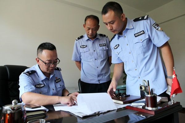 8月31日,錦州市公安局太和分局刑事犯罪案件偵查大隊大隊長楊楊(左一)正在和同事討論案情
